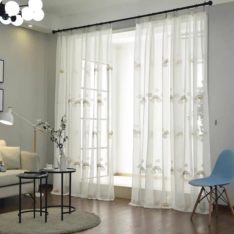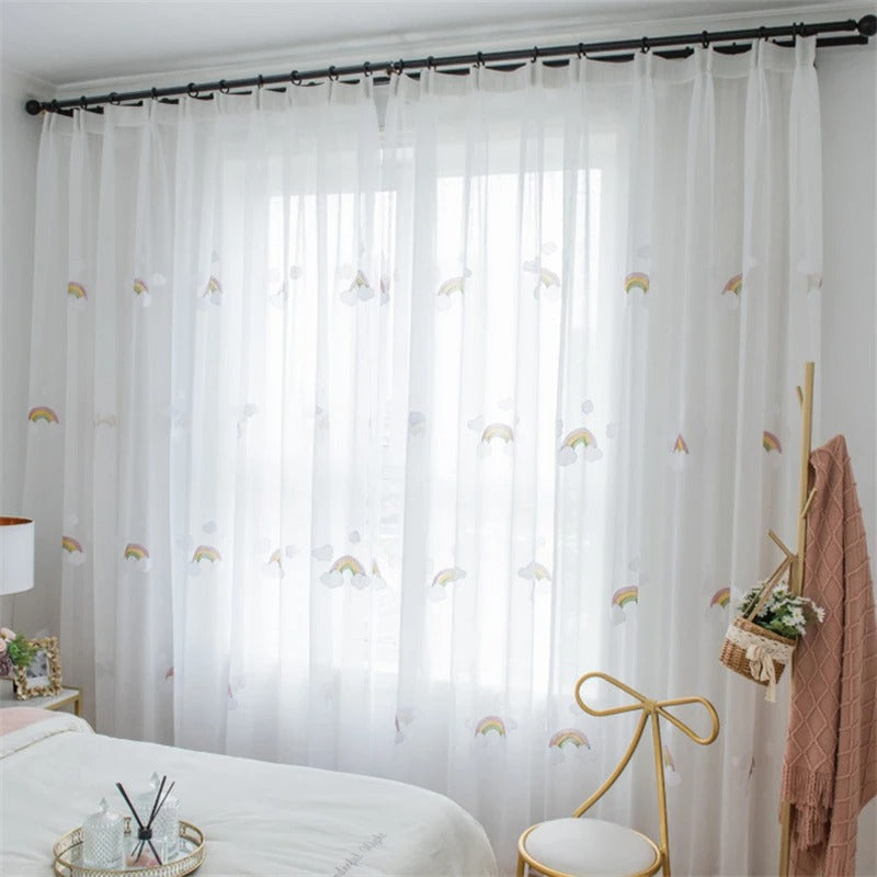 Barngardin med regnbågar och moln för en drömlik barnkammare