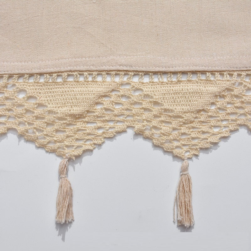 En Beige Gardinkappa i Linne-Look med Tofsar – Komfort och Stil