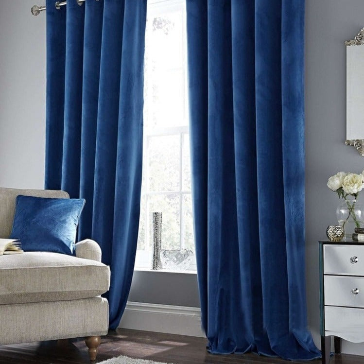 Skapa din drömatmosfär med Blå mörkläggningsgardin i sammet med öljetter