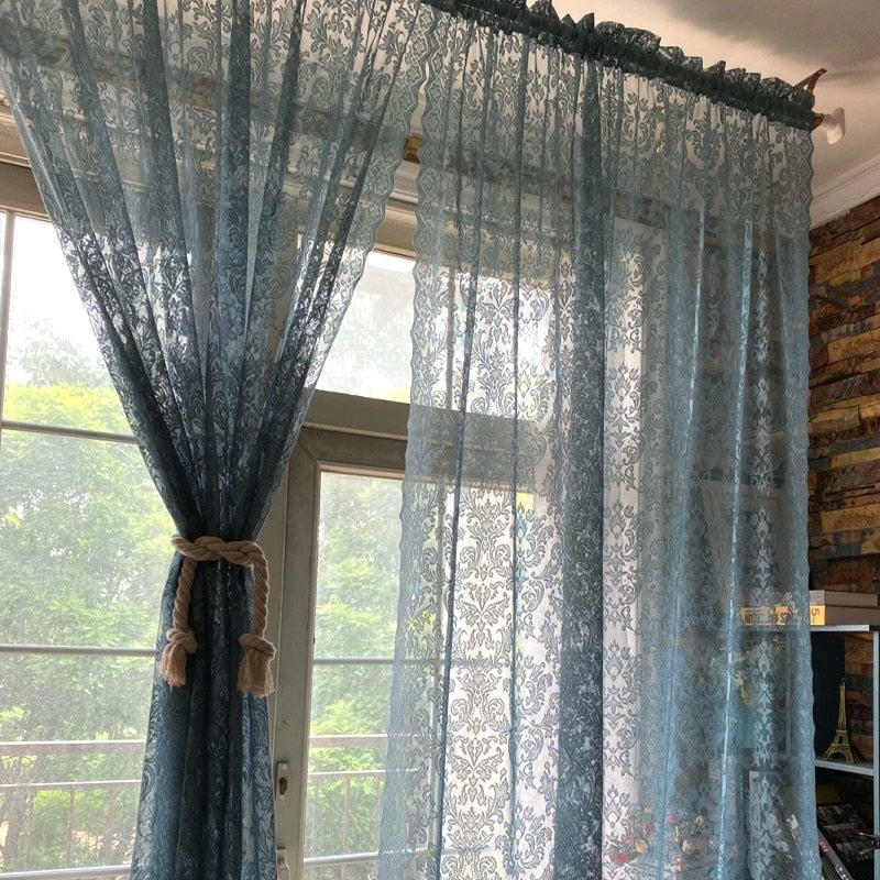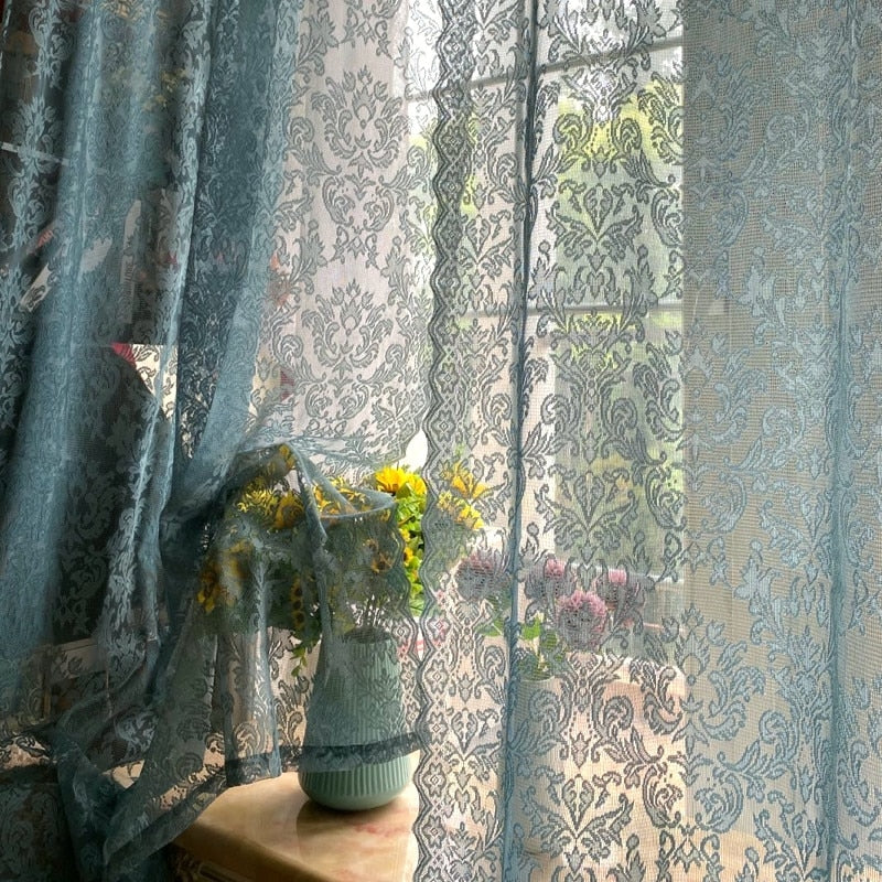 Skapa din dröminredning med vår Blå spetsgardin i vintage stil.