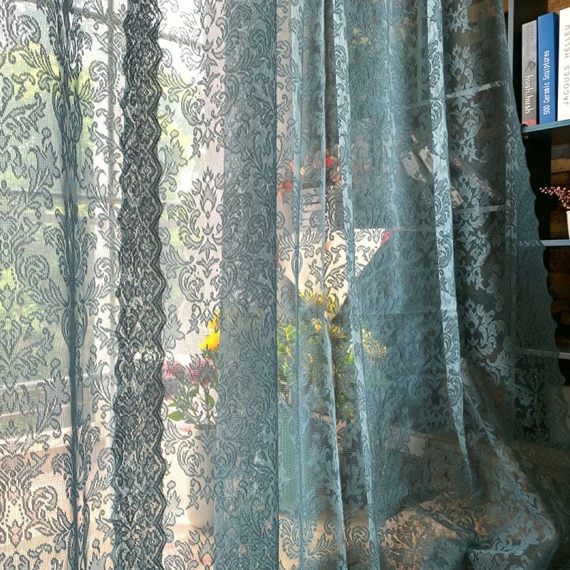 Förvandla ditt hem med vår underbara Blå spetsgardin i vintage stil! Denna vackra gardin är inte bara en enkel fönsterdekoration, den är en känsla av historia och elegans som tar dig tillbaka till en svunnen tid. Föreställ dig hur den mjuka, turkosa nyansen filtrerar solljuset och skapar en lugn och inbjudande atmosfär i ditt vardagsrum, sovrum eller varför inte i köket? Med sitt detaljerade spetsmönster i damaskstil ger den en sofistikerad touch utan att kännas överdådig. Den passar perfekt för dig som älskar en romantisk, shabby chic eller lantlig inredningsstil och vill ge ditt hem en personlig och tidlös känsla. Låt denna gardin bli pricken över i:et som fulländar din inredning!