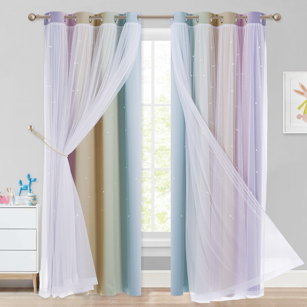 Skapa ditt drömrum med Dubbellagers mörkläggningsgardin med stjärnor Kala