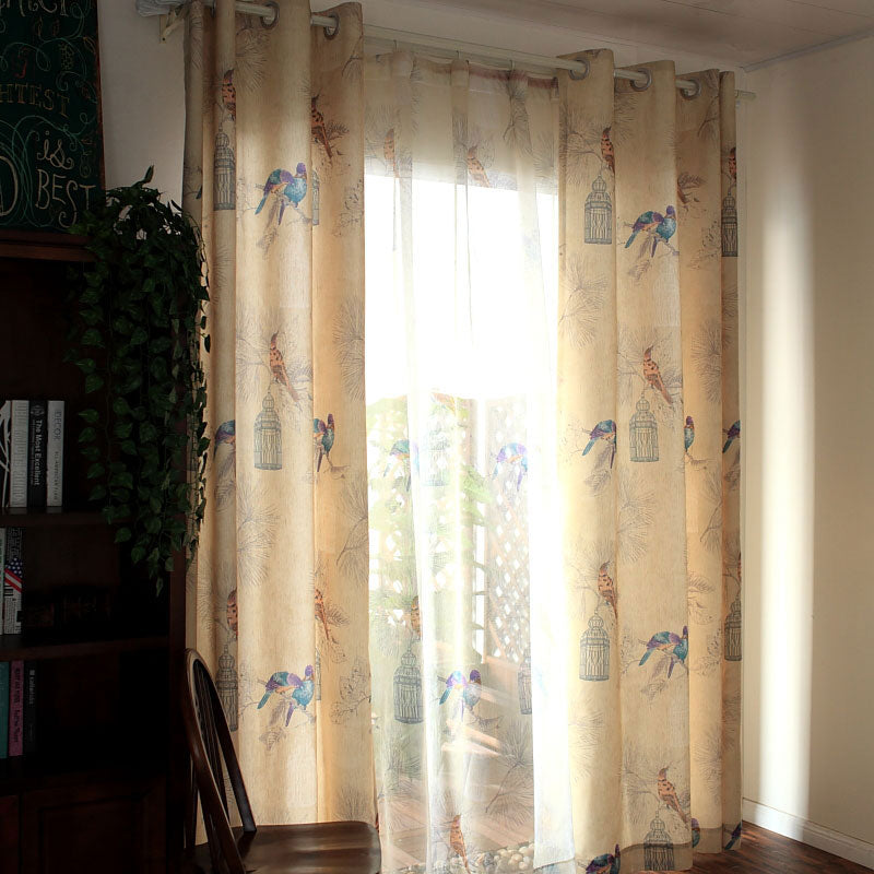Förvandla ditt hem med denna charmiga gardin i linnelook med lila fågelmönster! Föreställ dig hur den mjukt filtrerar ljuset och skapar en lugn och inbjudande atmosfär i ditt rum. Denna gardin är mer än bara en fönsterdekoration; den är en stilfull detalj som tillför karaktär och värme. De detaljerade fågelmotiven i lila och bruna toner, tillsammans med diskreta burar och grenar, ger en känsla av en fridfull trädgård mitt i ditt hem. Den lätta linnelooken ger en naturlig och luftig känsla som passar perfekt för att skapa en avslappnad och ombonad miljö. Låt denna gardin bli den perfekta bakgrunden för dina dagliga stunder av avkoppling.