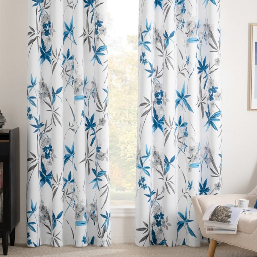 Denna gardin är mer än bara ett tygstycke, den är en berättelse om naturens skönhet som kommer in i ditt hem. De blå nyanserna ger en känsla av klar himmel och lugnt vatten, medan de grå tonerna bidrar med en jordnära och sofistikerad känsla. Tänk dig hur solljuset filtreras genom detta vackra mönster, och skapar en mjuk och inbjudande atmosfär i rummet. Den vita bakgrunden gör att mönstret verkligen poppar ut och blir en central del av din inredning. Den är perfekt för dig som älskar en stilren design med en lekfull twist.