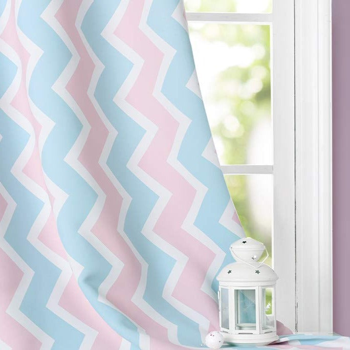 Skapa en lekfull och drömlik atmosfär i barnets rum med vår underbara gardin med sicksackmönster. Denna gardin är inte bara en praktisk fönsterdekoration, utan också en stilfull detalj som förvandlar rummet till en mysig oas. De mjuka pastellfärgerna, rosa och ljusblått, kombinerat med det lekfulla sicksackmönstret, ger en känsla av lugn och glädje. Perfekt för att stimulera fantasin och skapa en trygg miljö där ditt barn kan växa och leka.
