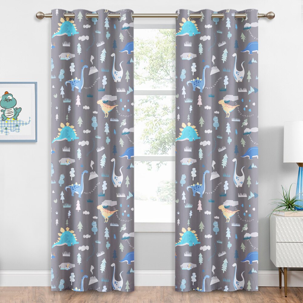 Grå Mörkläggningsgardin med Dinosauriemotiv för en God Natt Sömn