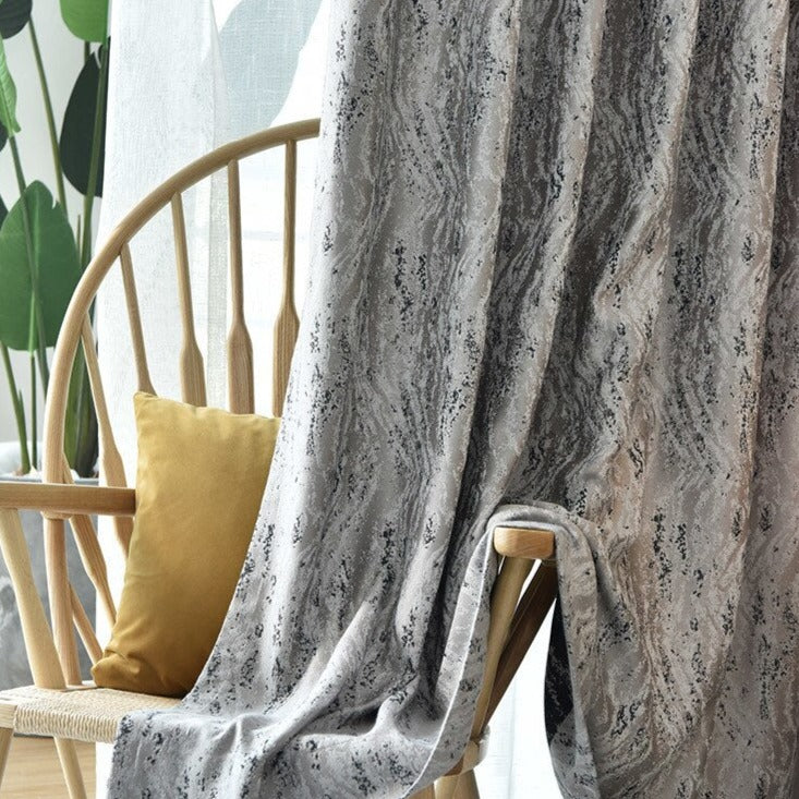 Skapa din dröminredning med en grå mörkläggningsgardin med modernt mönster.