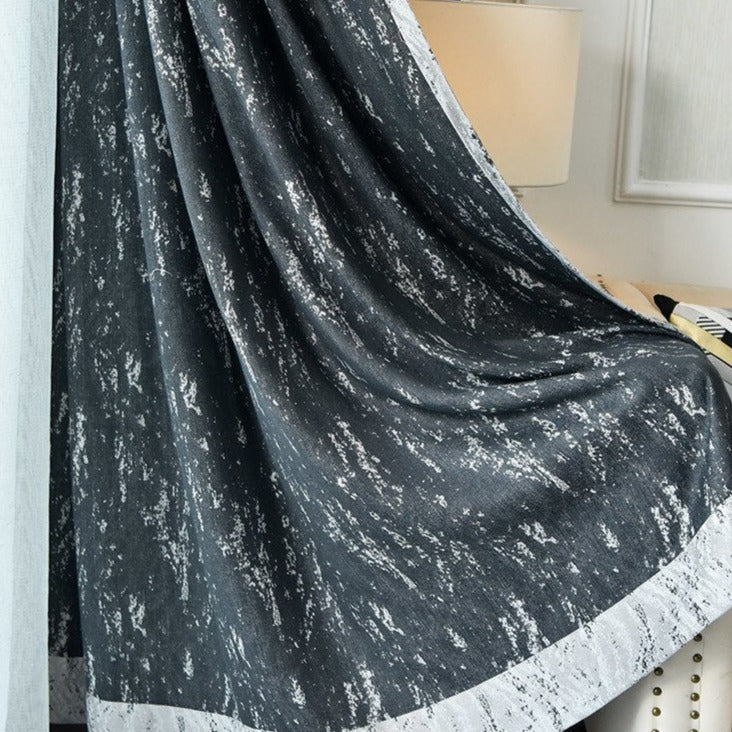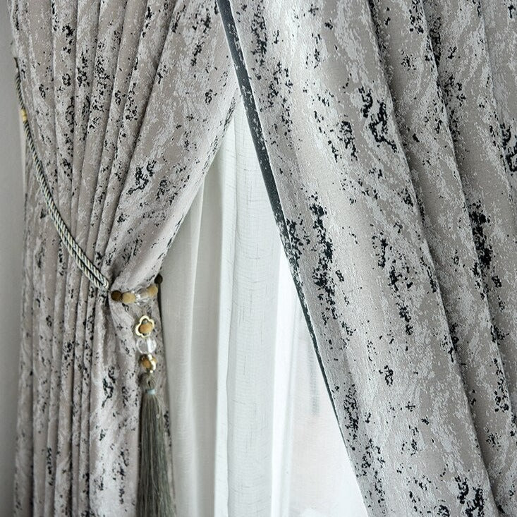 Förvandla ditt hem med vår eleganta grå mörkläggningsgardin med modernt mönster. Den här gardinen är inte bara en praktisk lösning för att kontrollera ljusinsläpp och insyn, den är också en sofistikerad inredningsdetalj som lyfter vilket rum som helst. Med sitt unika, moderna mönster i gråskala och svarta accenter, ger den en känsla av lugn och stil. Föreställ dig hur den mjukt draperar ditt fönster och skapar en ombonad atmosfär där du kan koppla av och njuta av ditt privatliv. Den medföljande gardinhållaren med tofs och pärlor ger en extra touch av lyx och hjälper dig att enkelt binda upp gardinen för att släppa in ljus när du önskar.