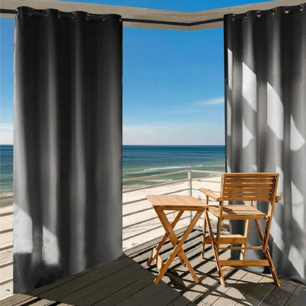 Skapa din drömutemiljö med en Grå vattentät utomhusgardin med öljetter
