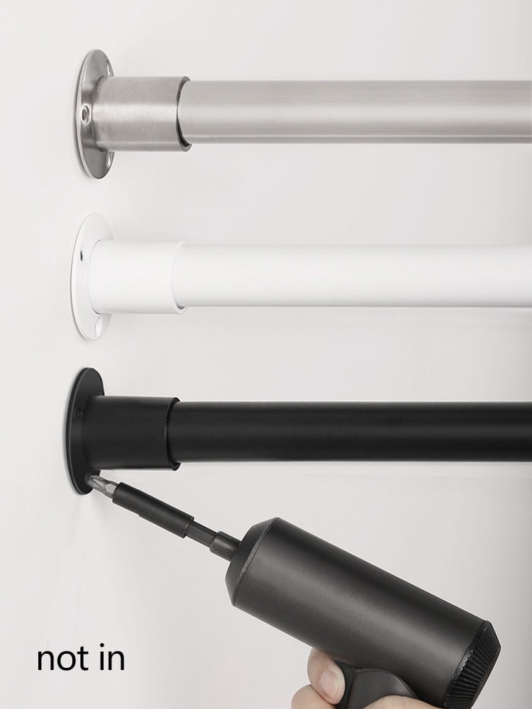 Att installera vår justerbara spännstång i stål 1.5-2.2m är så enkelt att vem som helst kan göra det på bara några minuter. Du behöver inte vara en händig person eller ha en full verktygslåda. Stången är utformad för att spännas upp mellan två ytor med hjälp av fjäderkraft, vilket skapar ett stabilt och säkert fäste utan att skada väggarna. Vrid bara stången för att justera längden tills den sitter ordentligt fast. Ingen borrning, inga skruvar, ingen stress!