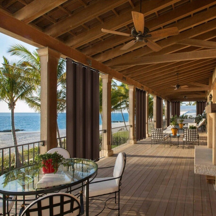 Med denna mörka utomhusgardin får du det insynsskydd du behöver för att verkligen koppla av utomhus. Den tjocka tygkvaliteten ser till att ingen oönskad insyn stör dina stunder på balkongen, oavsett om du läser en bok, fikar med vänner eller bara njuter av lugnet. Gardinens mörka färg absorberar dessutom en del av solens strålar, vilket skapar en svalare och behagligare atmosfär. Föreställ dig att sitta bekvämt, skyddad från både sol och insyn, med havets brus i bakgrunden – en sann njutning.