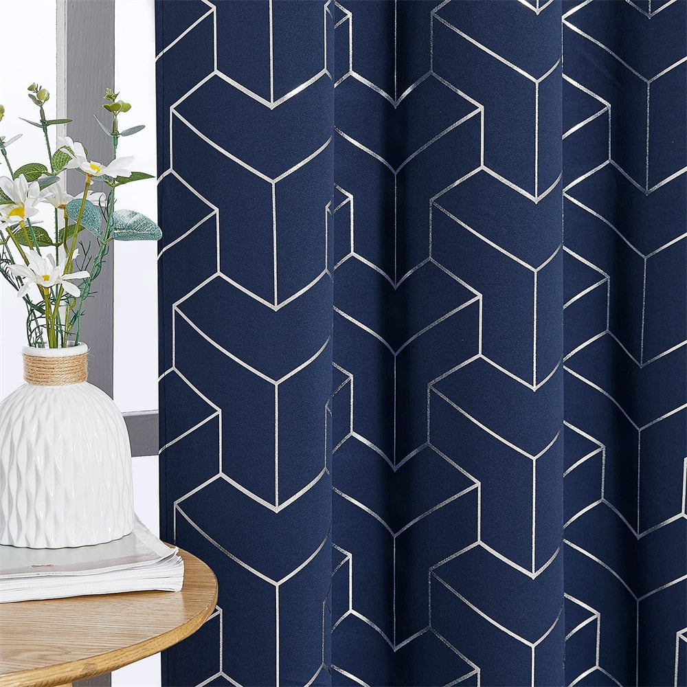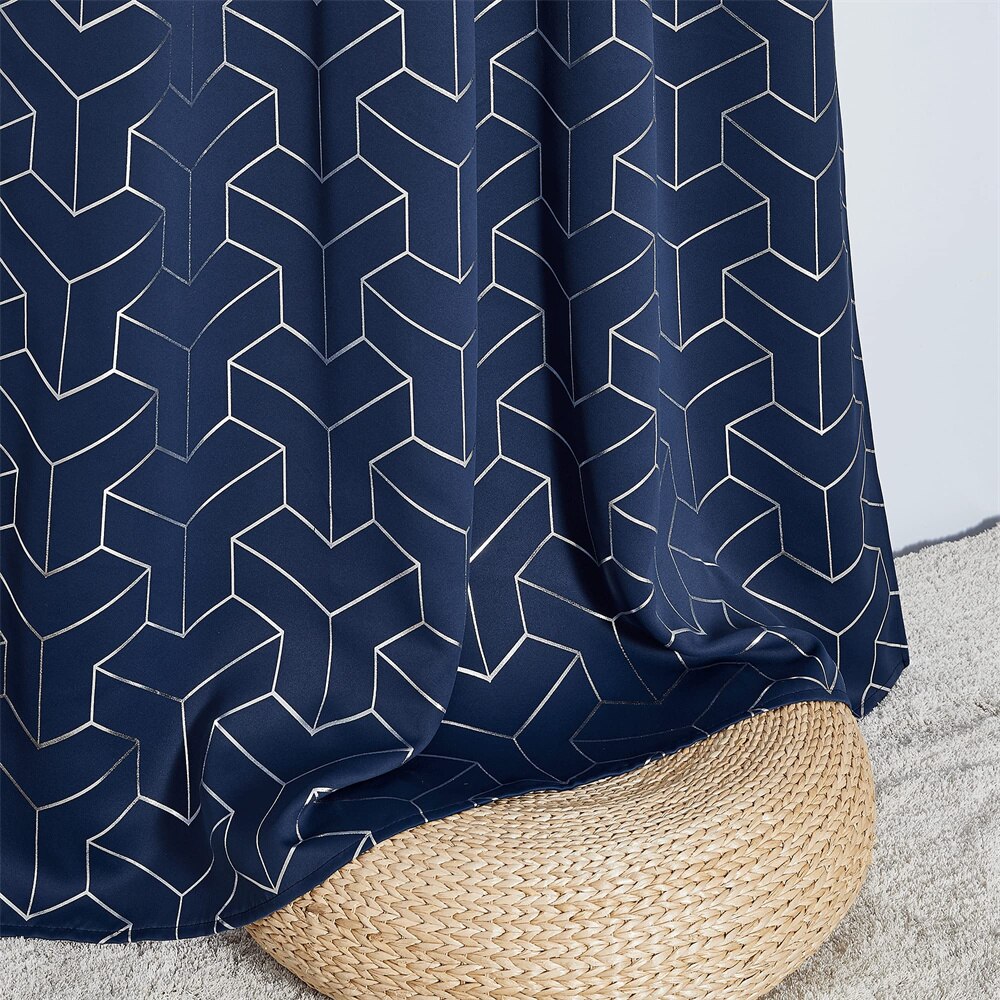Förvandla ditt hem med vår fantastiska mörkblå mörkläggningsgardin med guldmönster, en perfekt kombination av stil och funktionalitet. Denna gardin är designad för att ge dig fullständig mörkläggning, vilket skapar en avkopplande och privat atmosfär i ditt sovrum, vardagsrum eller kontor. Det unika guldmönstret med geometriska former ger en touch av lyx och modern elegans som lyfter inredningen i alla rum. Föreställ dig att vakna utvilad efter en god natts sömn, ostörd av morgonljuset, eller njuta av en mysig filmkväll utan irriterande reflexer på TV:n. Denna gardin är mer än bara ett fönsterskydd; den är en investering i ditt välbefinnande och din heminredning.
