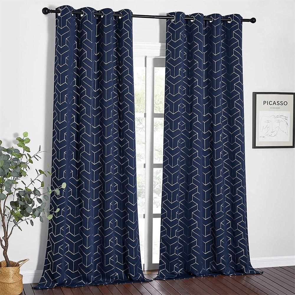 Fördelar med Vår Mörkblå Mörkläggningsgardin med Guldmönster