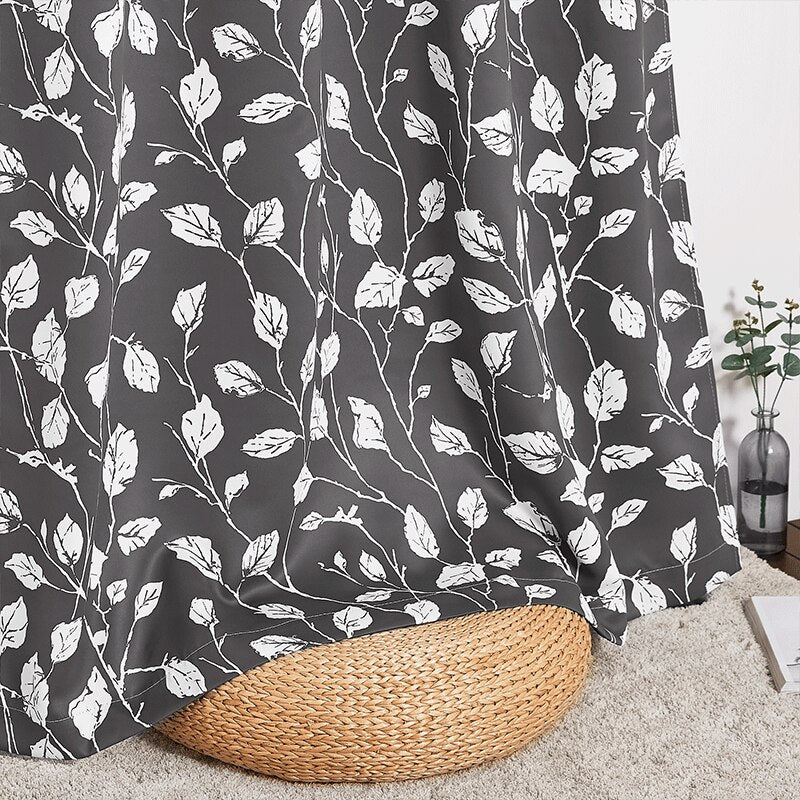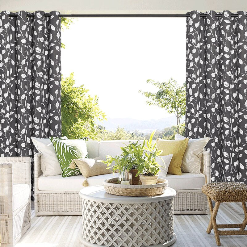 Fördelar med vår Mörkgrå utomhusgardin med vitt lövmönster