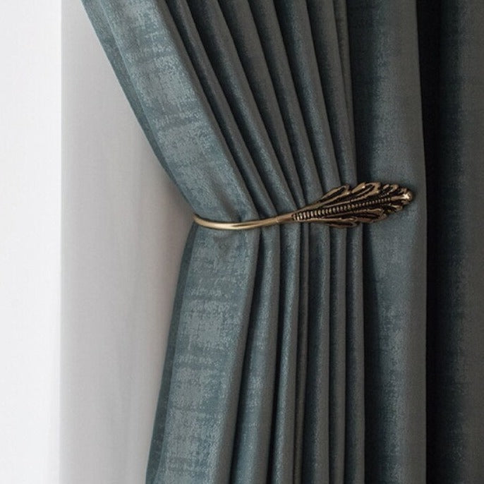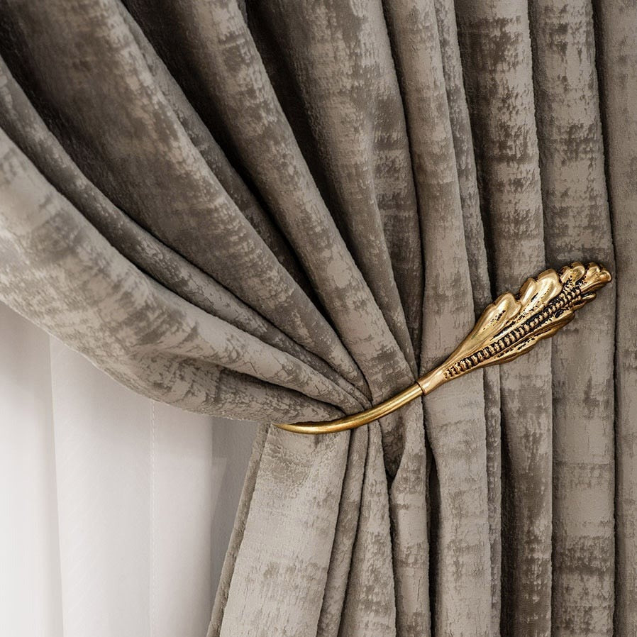 - Inkluderar en elegant fjäderformad gardinhållare i antikguld.