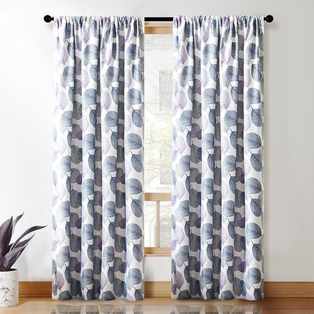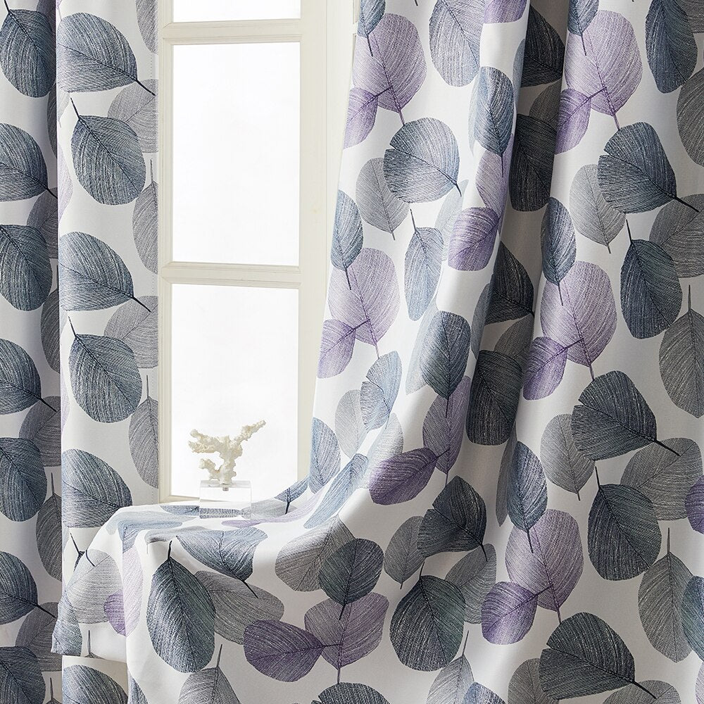 Skapa ditt drömhem med denna mörkläggningsgardin med lila och gråa löv