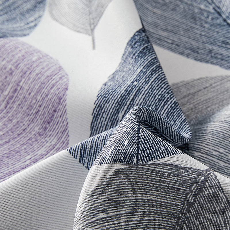 - Stilren design: Eleganta lila och gråa lövmönster som passar många inredningsstilar.