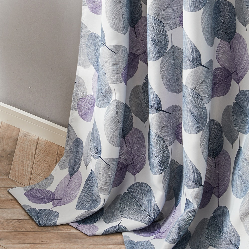 Mörkläggningsgardin med lila och gråa löv: Skapa en lugn oas i ditt hem