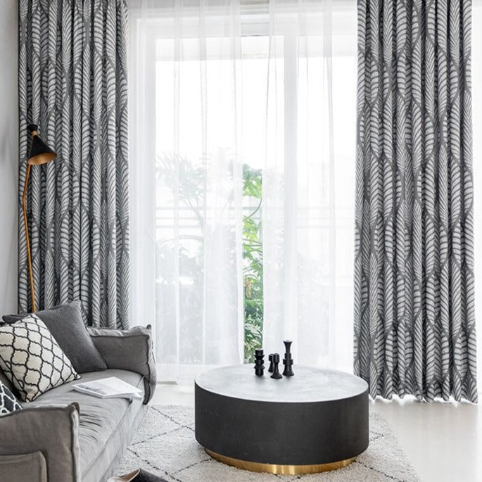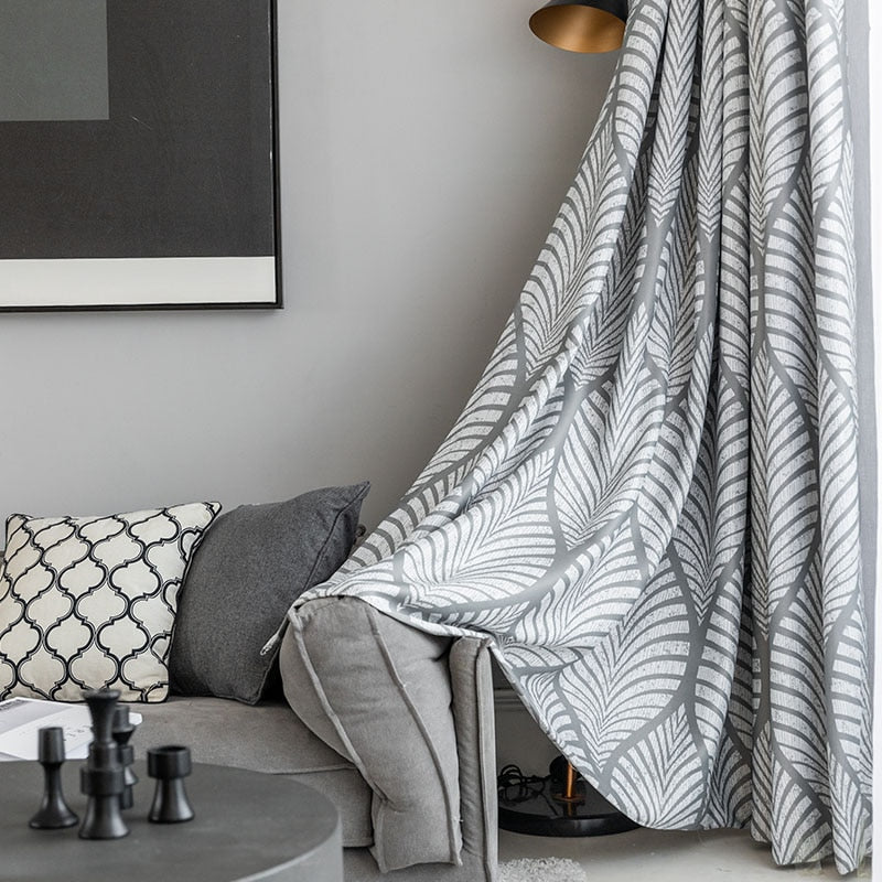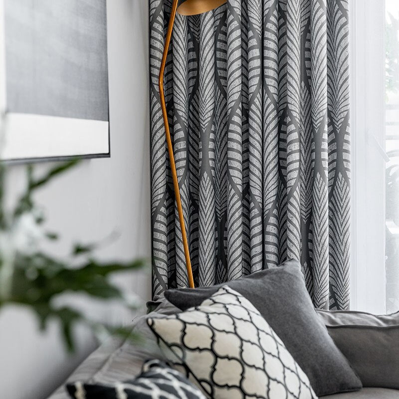 Mörkläggningsgardin med modernt lövmotiv – En stilfull touch till ditt hem