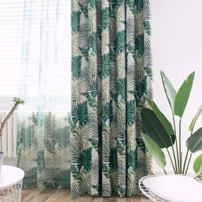 Skapa din egen oas med en Mörkläggningsgardin med tropiskt djungelmönster.