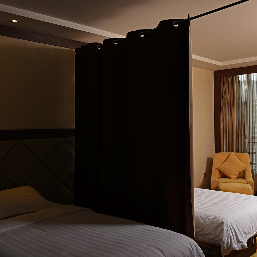 Mörkläggningsgardin som rumsavdelare med öljetter