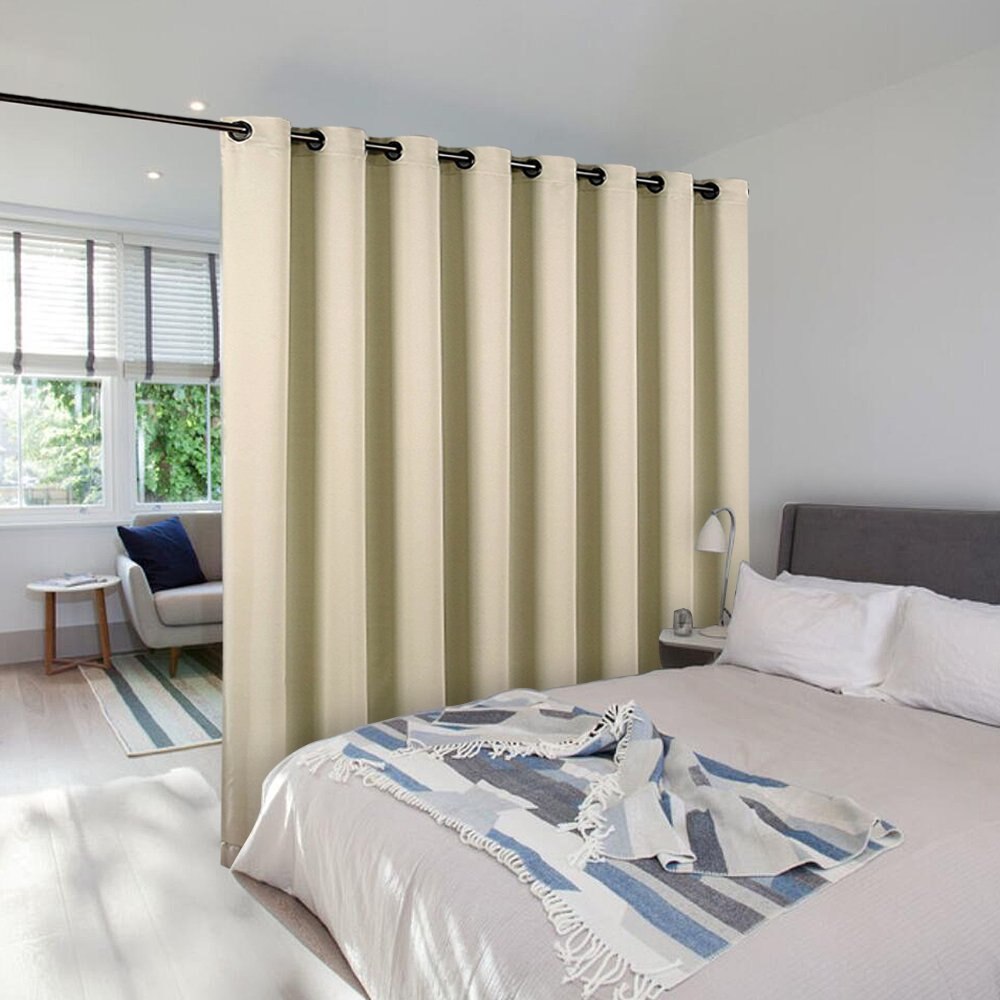 Skapa din egen oas med en mörkläggningsgardin som rumsavdelare med öljetter