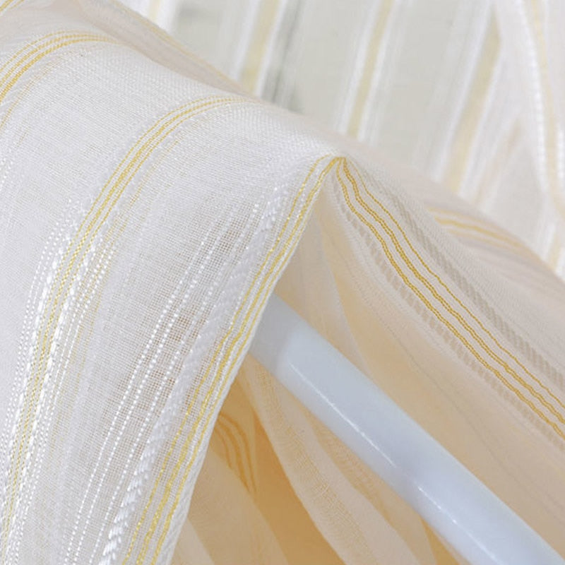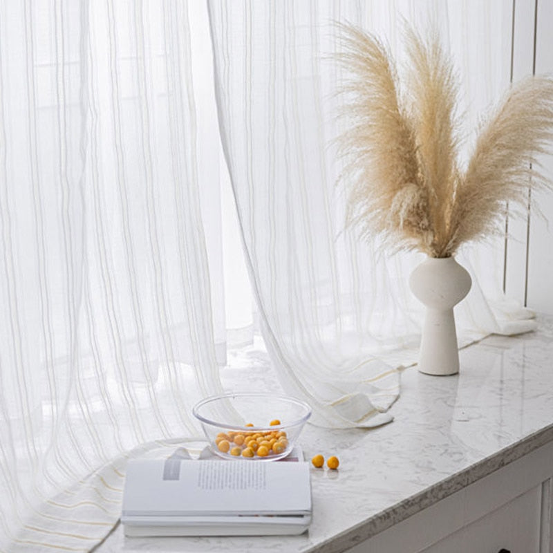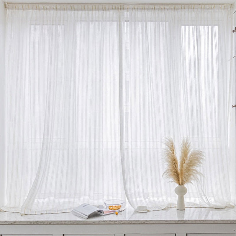 Denna gardin är mer än bara en vacker inredningsdetalj; den är en smart investering för ditt hem. Föreställ dig hur solens strålar filtreras mjukt genom det lätta tyget, skapande ett behagligt sken i rummet. Den randiga designen ger en känsla av rymd och lugn, perfekt för sovrum, vardagsrum eller kök. Dessutom, tack vare kardborrefästningen, kan du enkelt ta ner gardinen för rengöring eller för att byta stil när andan faller på. Det är den perfekta kombinationen av estetik och funktionalitet, skräddarsydd för ett modernt hem.