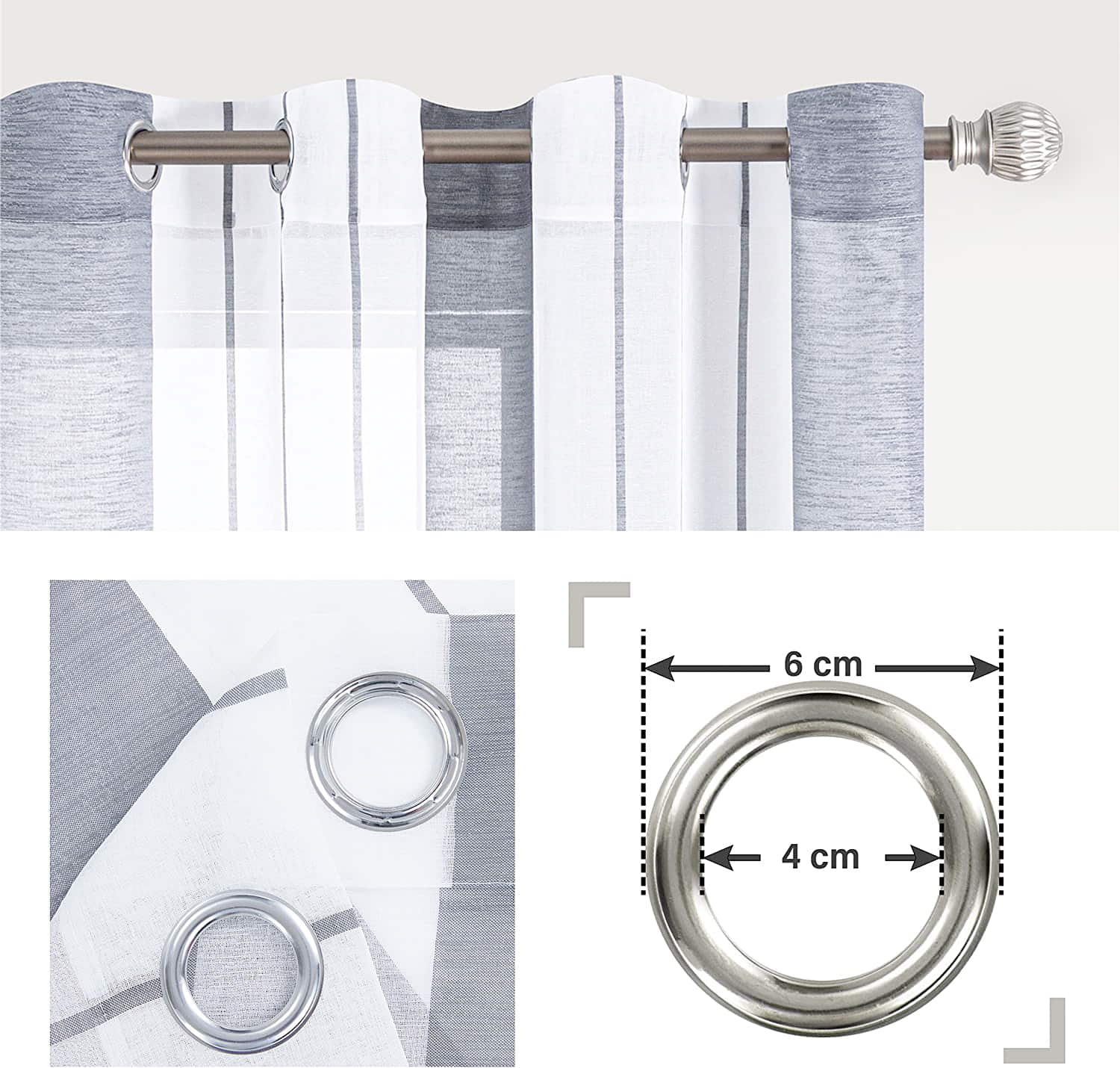 - Lätt att hänga upp med praktiska metallringar.