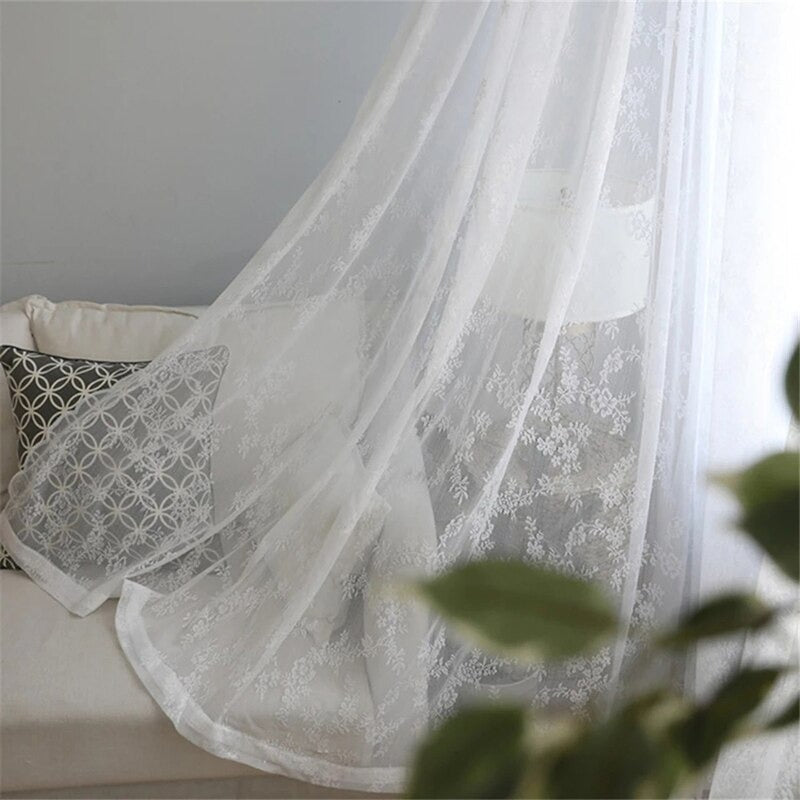 Skapa en drömsk atmosfär med vår Skir gardin med broderat blommotiv