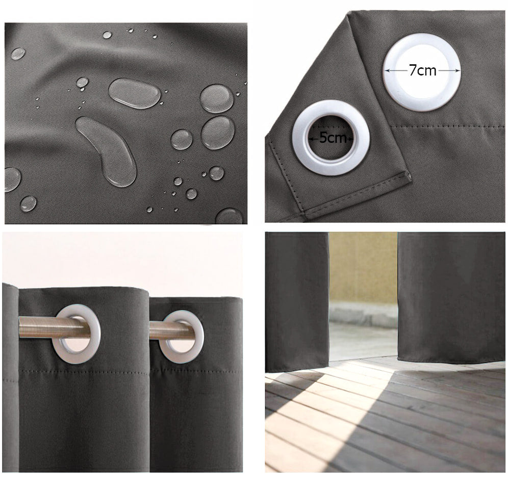 Förvandla din pergola till en mysig oas med vår slitstarka vattentäta gardin. Denna högkvalitativa gardin, med sin eleganta gråa färg och robusta tyg, är designad för att stå emot väder och vind samtidigt som den ger ditt utomhusutrymme en sofistikerad touch. Föreställ dig att koppla av under din pergola, skyddad från solens strålar och en oväntad regnskur, omgiven av komfort och stil.