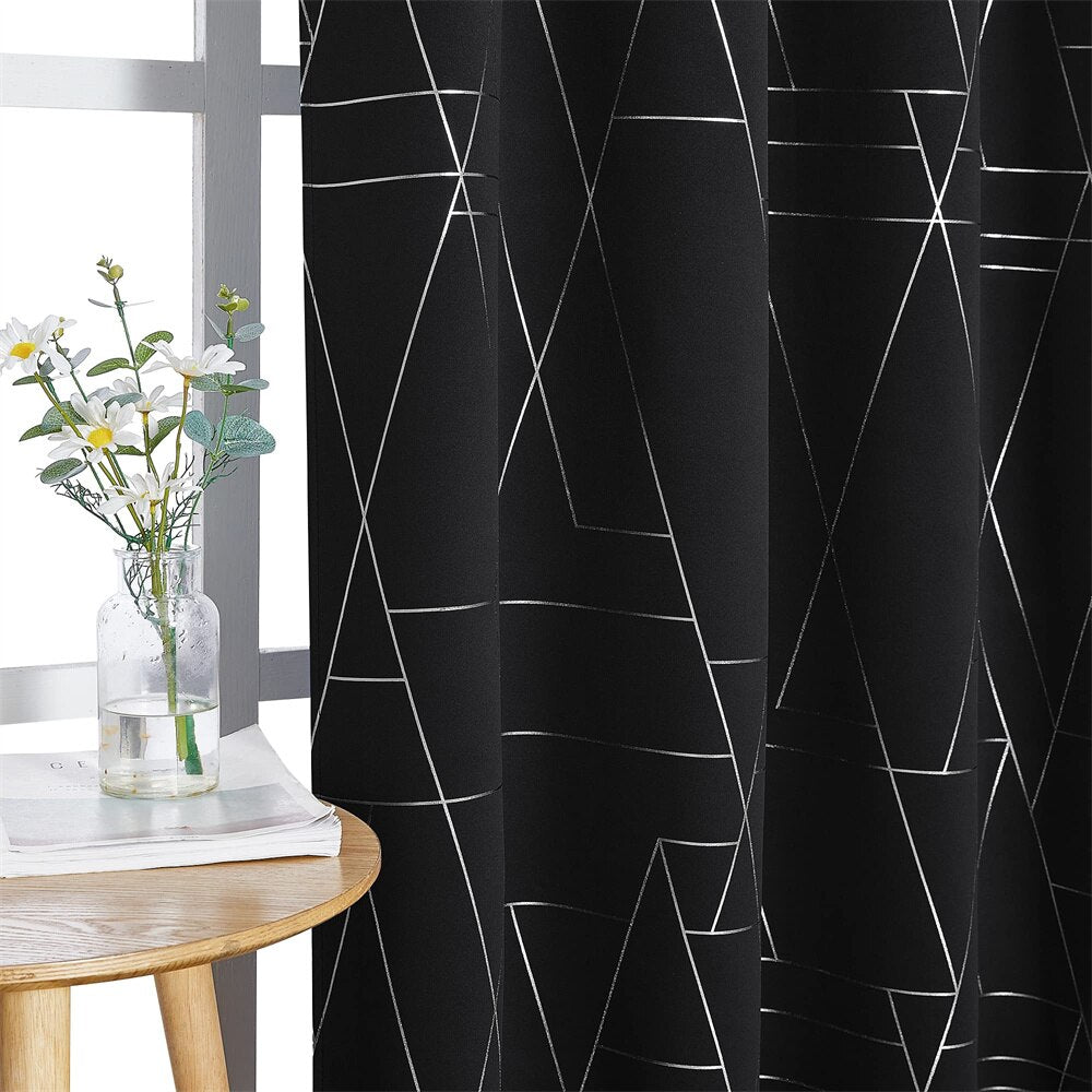 Design och funktion i vår Svart mörkläggningsgardin med silverlinjer