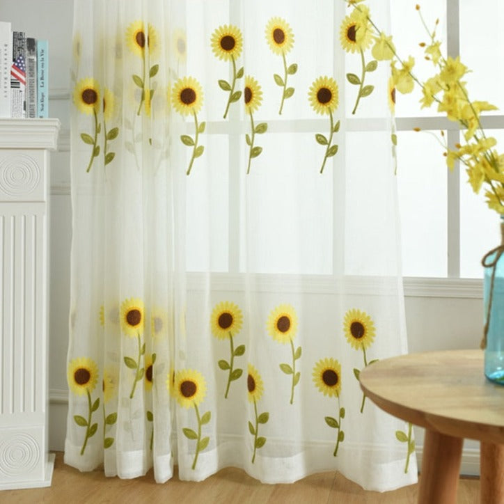 Låt ditt hem blomstra med vår förtrollande tunna gardin med broderade solrosor. Det är den perfekta detaljen för att förnya och ljusa upp ditt hem.