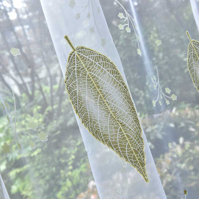 Denna Tunn gardin med grönt lövmönster är det perfekta valet för att förnya ditt fönster och bjuda in våren, året runt.
