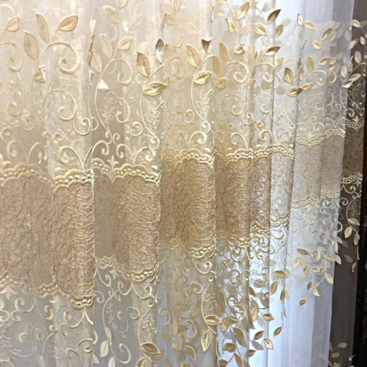 Ge ditt hem en touch av elegans med vår tunna gardin med guldiga broderade löv