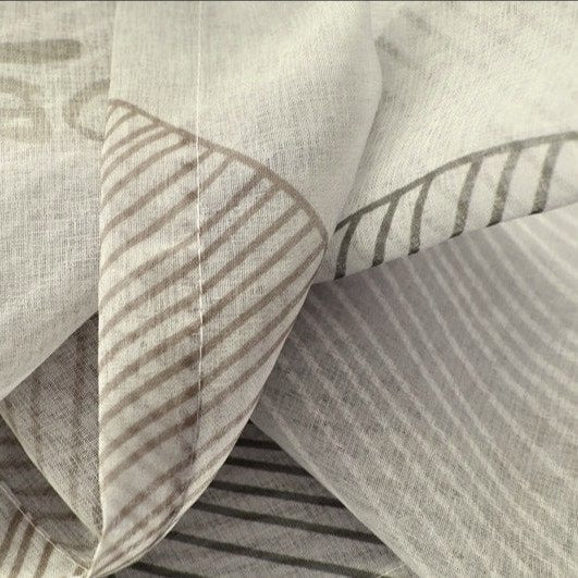 Skapa en lätt och luftig atmosfär i ditt hem med denna vackra tunna gardin. Med sitt stilrena lövmönster i neutrala toner ger den ett fräscht och modernt intryck samtidigt som den låter lagom mycket ljus flöda in. Föreställ dig hur solstrålarna leker genom de subtila bladdesignerna, skapandes ett lugnande skuggspel i ditt rum. Denna gardin är perfekt för dig som vill ha avskildhet utan att kompromissa med ljusinsläppet, och den kompletterar enkelt en mängd olika inredningsstilar, från minimalistisk till bohemisk.