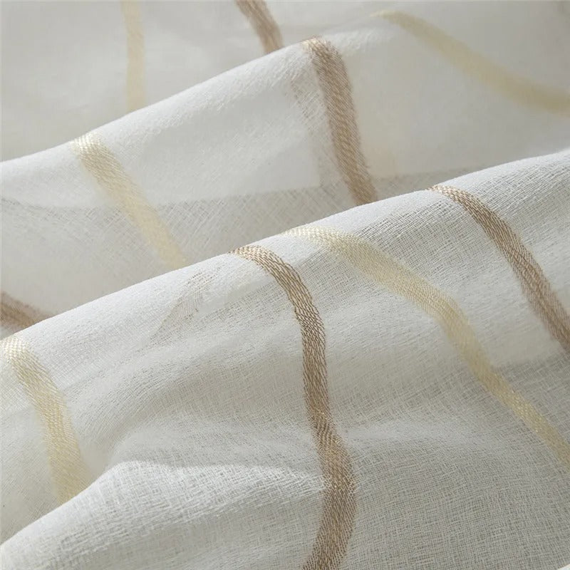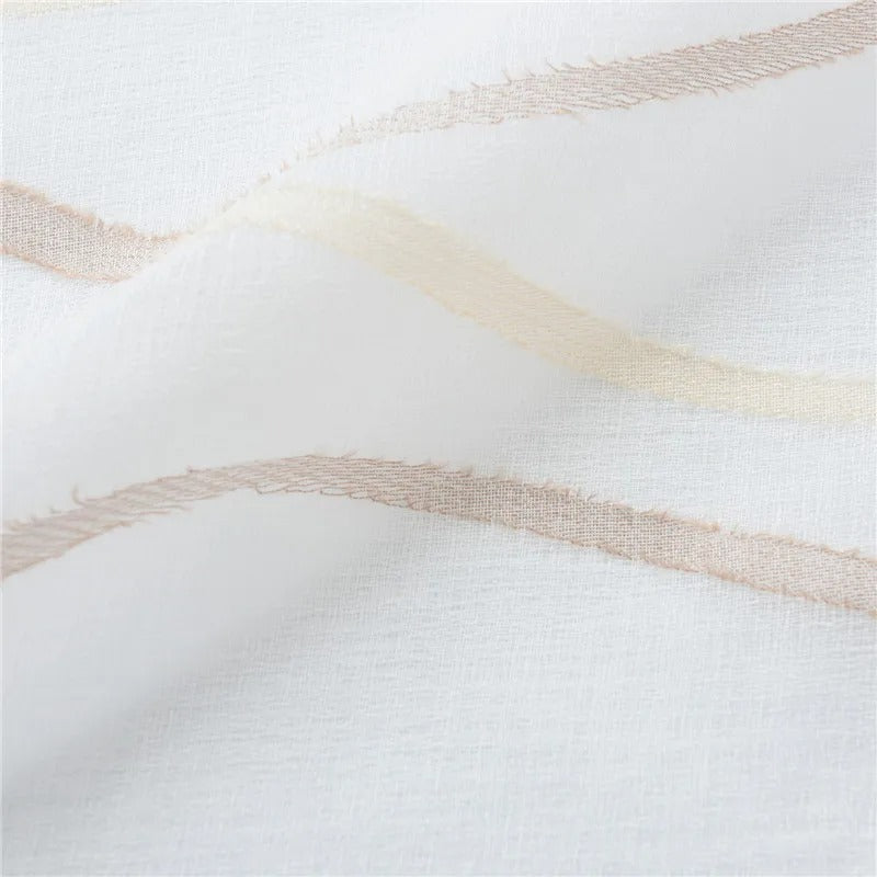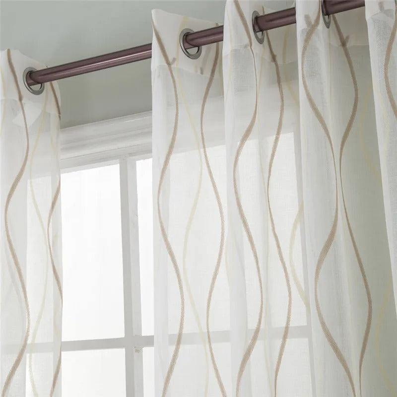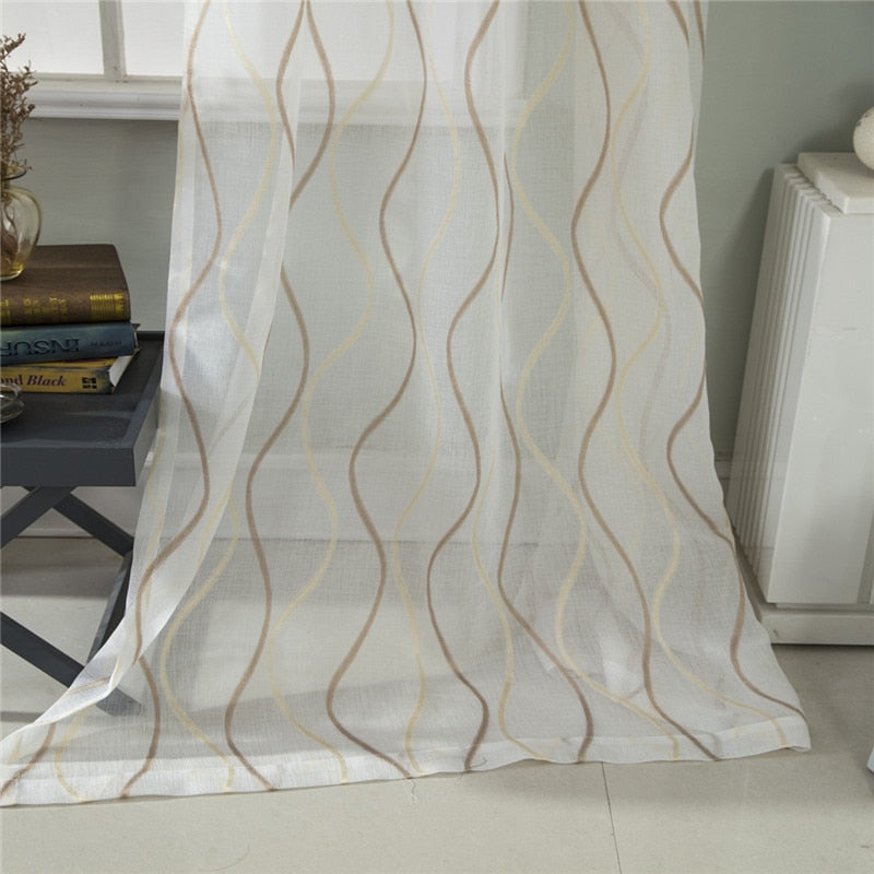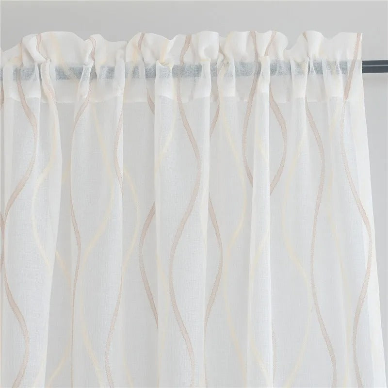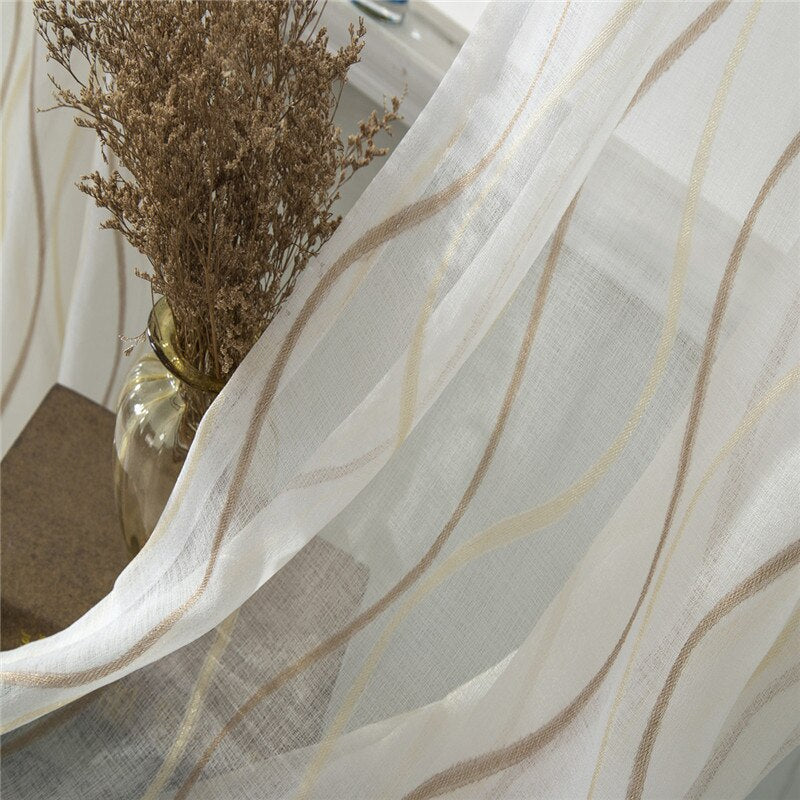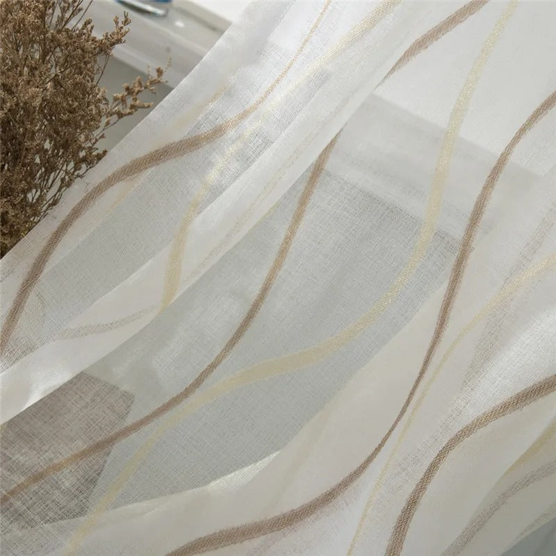 Vår tunna gardin med vertikalt vågmönster är mer än bara en gardin – den är en inredningsdetalj som lyfter hela rummet.