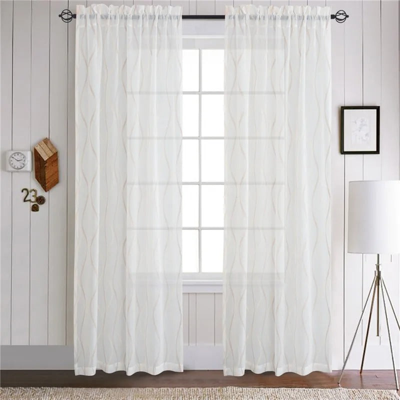 Upplev elegans och funktionalitet med våra Tunn gardin med vertikalt vågmönster. Designade för att ge ditt hem stil och värme, kombinerar de raffinerad design med praktisk användbarhet.