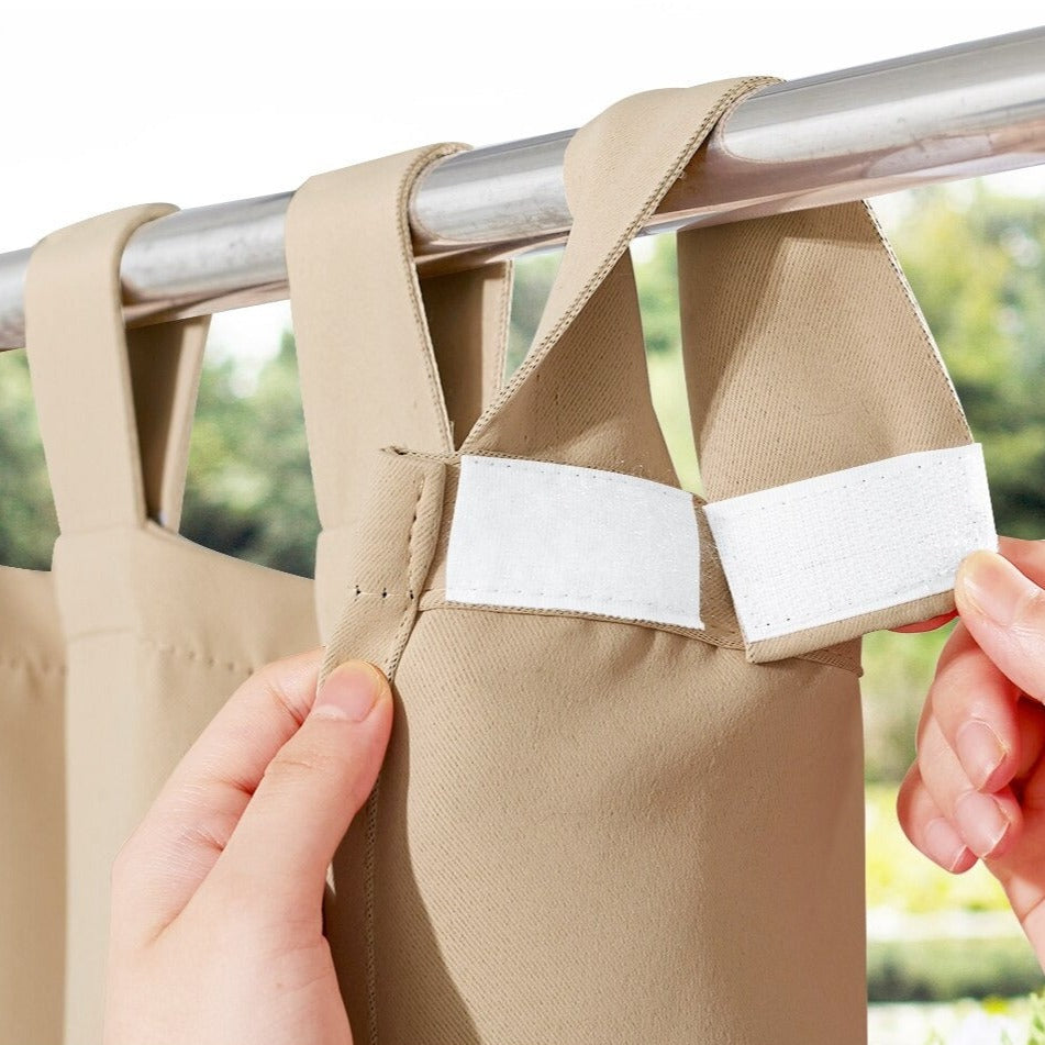 - **Enkel montering:** Med praktiska hankor är gardinerna lätta att trä på din gardinstång eller pergola.