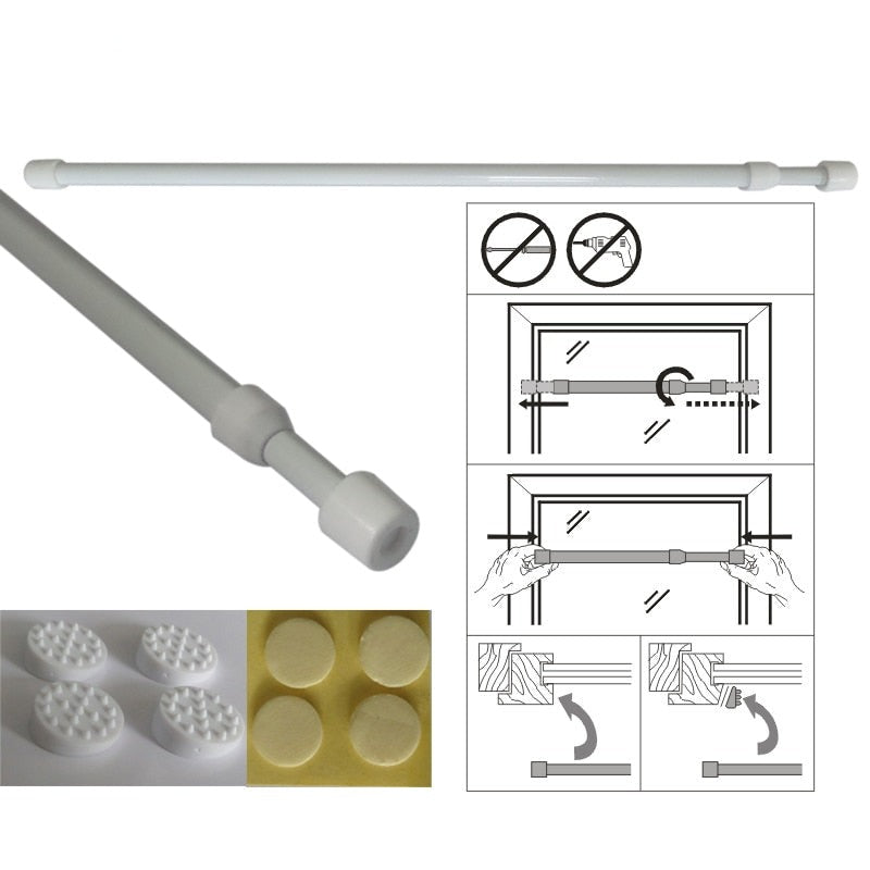 Gör ditt liv enklare med denna vita gardinstång för upphängning utan borrning och njut av flexibiliteten!