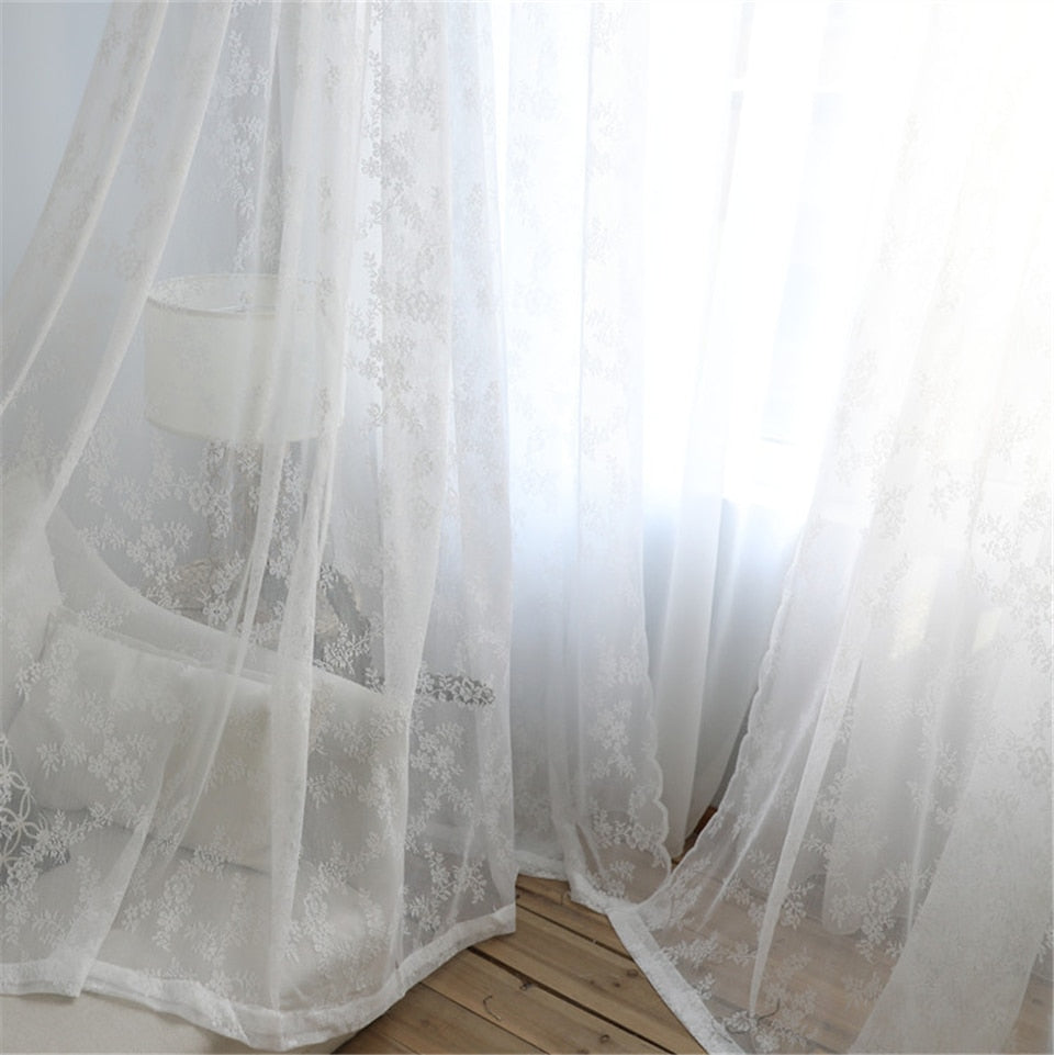 Fördelar med vår vita romantiska spetsgardin med blommor:
