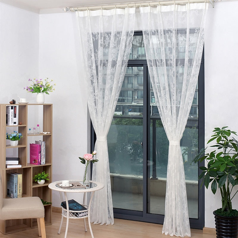 Låt ditt hem andas elegans och charm med vår vackra vita romantiska spetsgardin. Denna gardin, prydd med ett intrikat blommönster och en lekfull vågkant, är det perfekta valet för att skapa en ljus och inbjudande atmosfär i alla rum. Föreställ dig hur solens strålar filtreras mjukt genom spetsen, skapande ett drömlikt skuggspel som förvandlar ditt utrymme till en fridfull oas. Gardinen är inte bara en praktisk inredningsdetalj som ger avskildhet, utan också ett konstverk som lyfter din inredning och ger den en tidlös, romantisk känsla. Den passar utmärkt i sovrummet, vardagsrummet eller kanske i ett barnrum för att ge det en extra touch av magi. Med sin enkla upphängning är den lätt att installera och kommer att ge ditt fönster ett lyft på nolltid.