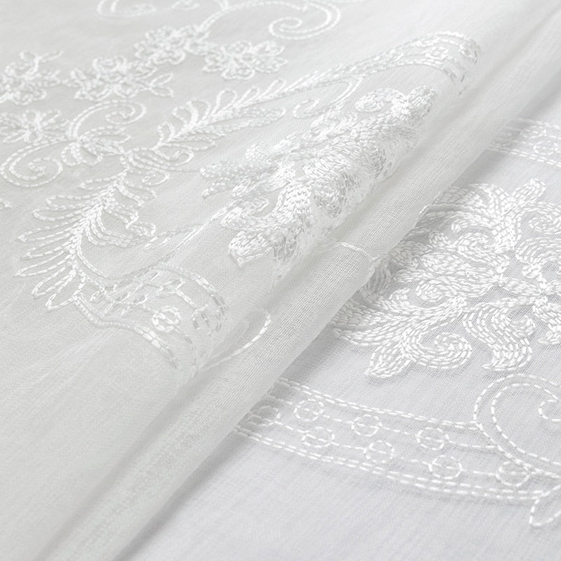 Förvandla ditt hem med vår vackra vita spetsgardin, designad med ett tidlöst och klassiskt mönster. Denna gardin är mer än bara ett fönsterskydd – den är en inredningsdetalj som tillför en känsla av lyx och romantik till vilket rum som helst. Med sitt delikata broderi och sin skira textur låter den ljuset flöda in mjukt, samtidigt som den skapar en behaglig och inbjudande atmosfär. Föreställ dig hur solens strålar leker i de intrikata mönstren och skapar vackra skuggor i ditt rum. Det är det perfekta valet för dig som vill ha en ljus och luftig känsla med en touch av klassisk elegans.