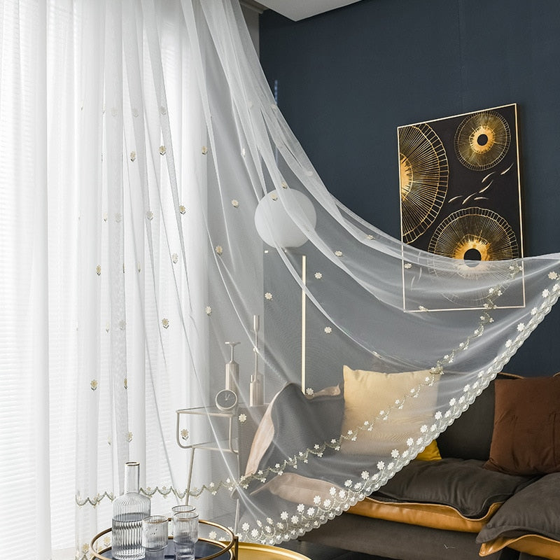 Vit tunn gardin med små blommor – Låt ljuset flöda in med stil